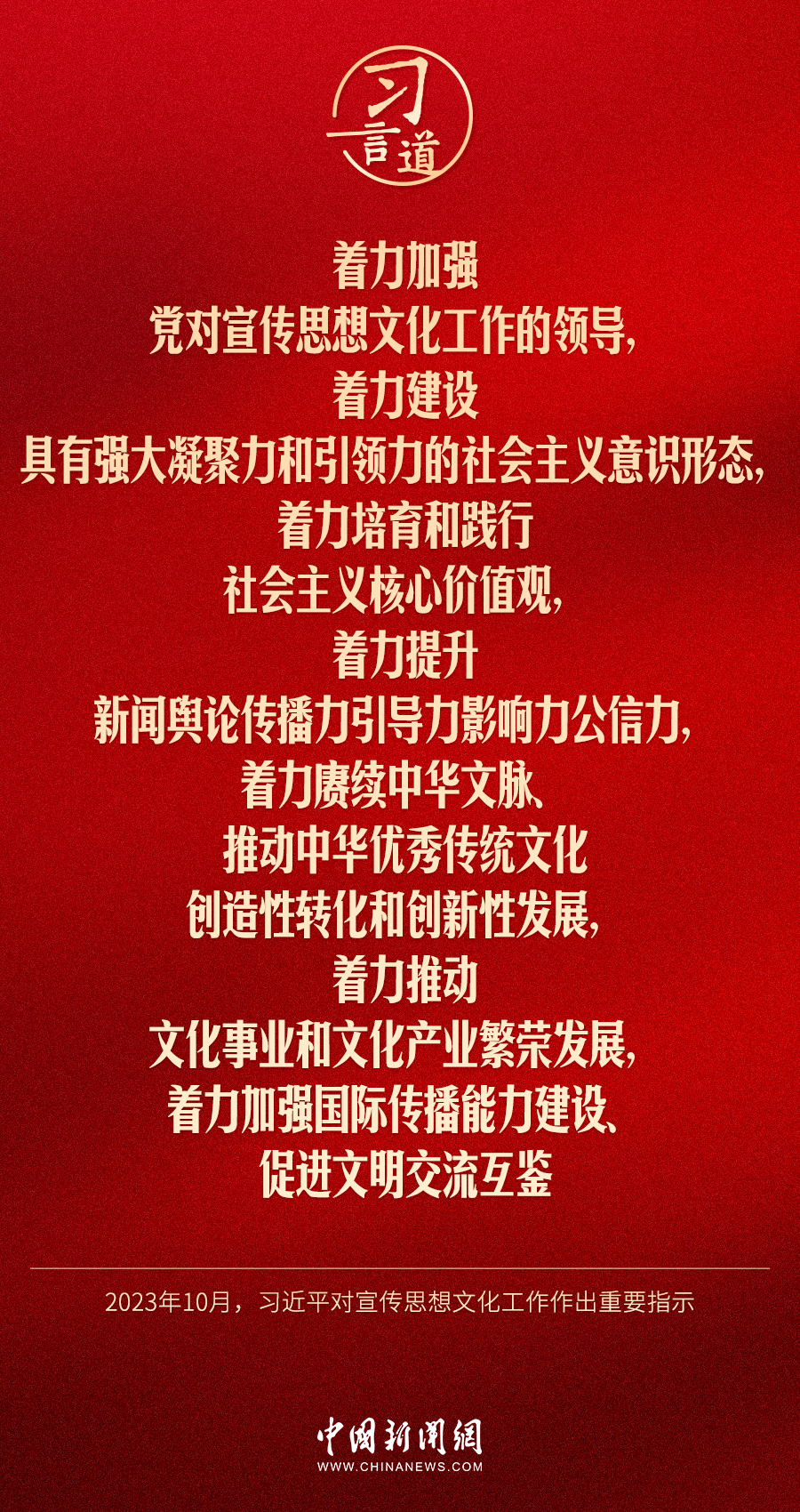 中共中央總書記、國家主席、中央軍委主席習(xí)近平近日對宣傳思想文化工作作出重要指示,他指出——