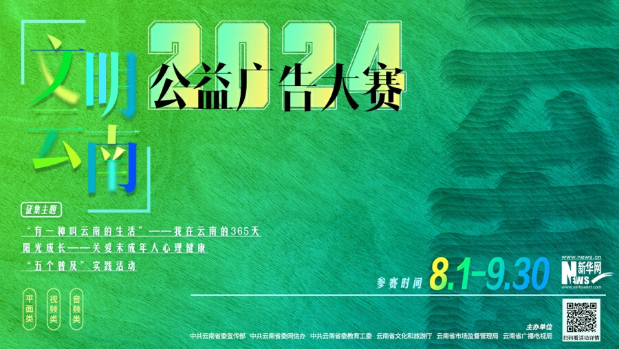 為進(jìn)一步加強(qiáng)云南省公益廣告宣傳工作,培育文明風(fēng)尚,倡導(dǎo)時(shí)代新風(fēng),推動(dòng)全社會(huì)廣泛踐行社會(huì)主義核心價(jià)值觀,由中共云南省委宣傳部、中共云南省委網(wǎng)信辦、中共云南省委教育工委、云南省文化和旅游廳、云南省市場監(jiān)督管理局、云南省廣播電視局聯(lián)合主辦的2024年“文明云南”公益廣告大賽正在火熱征集作品。