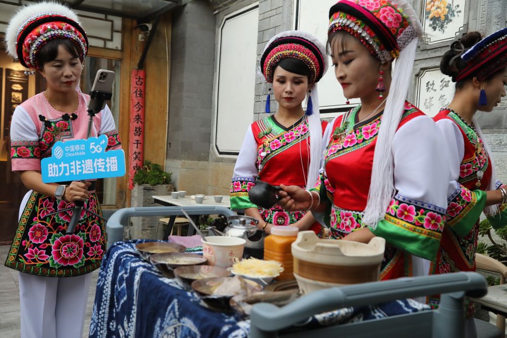 “大理三道茶,一苦二甜三回味。”在大理的一家民族歌舞餐廳內(nèi),“金花”們身穿白族服飾,一邊煮茶,一邊向直播間的粉絲介紹三道茶制作工藝和用料。隨后還為大家表演白族非遺文化霸王鞭,在傳播非遺文化的同時(shí),吸引客流。