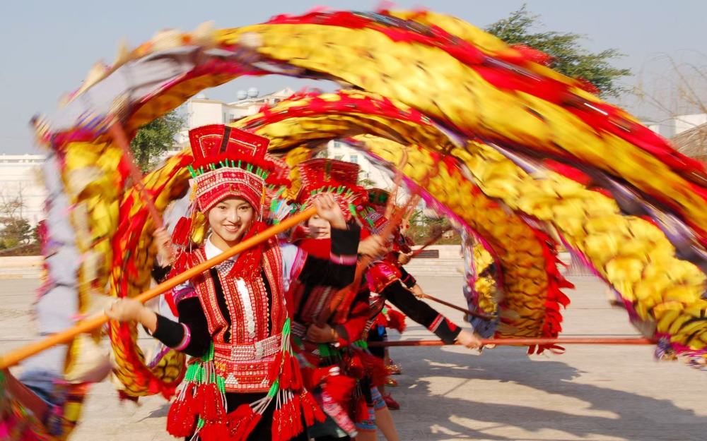 紅河哈尼族彝族自治州石屏縣彝族花腰女子舞龍。(供圖)