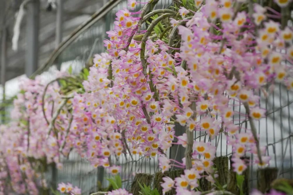 基地里種植的玫瑰石斛迎來盛花期。