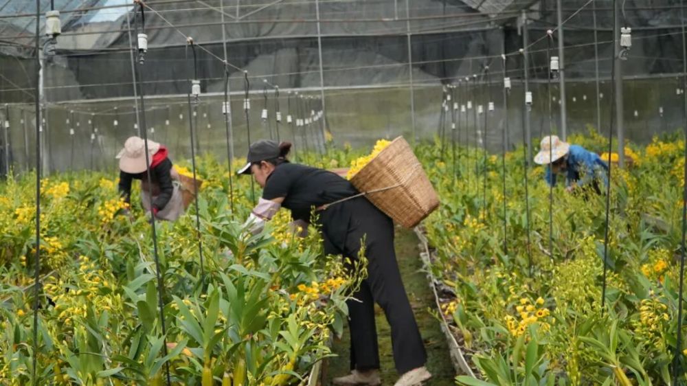 石斛花開采收季,基地里的工人喜笑顏開。