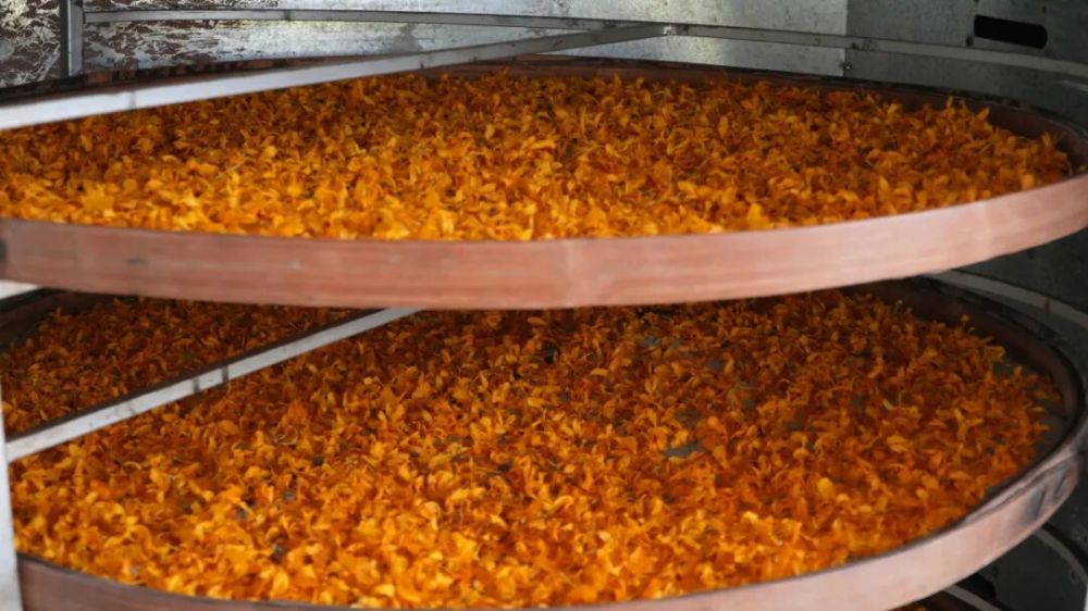 新鮮采收的石斛花在低溫烘干設備加工成干花。