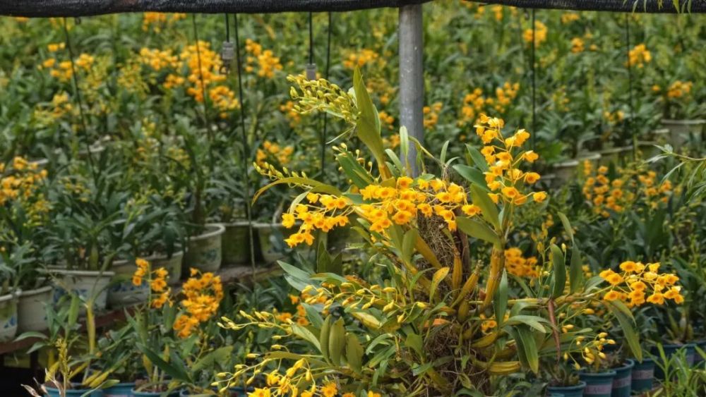金燦燦的鼓槌石斛花肆意綻放。