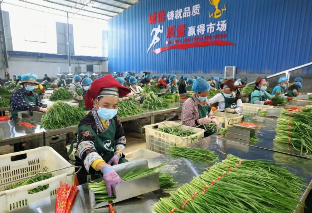 在丘北正輝農(nóng)業(yè)開發(fā)有限公司,工人們正在打包韭菜。周燦 攝