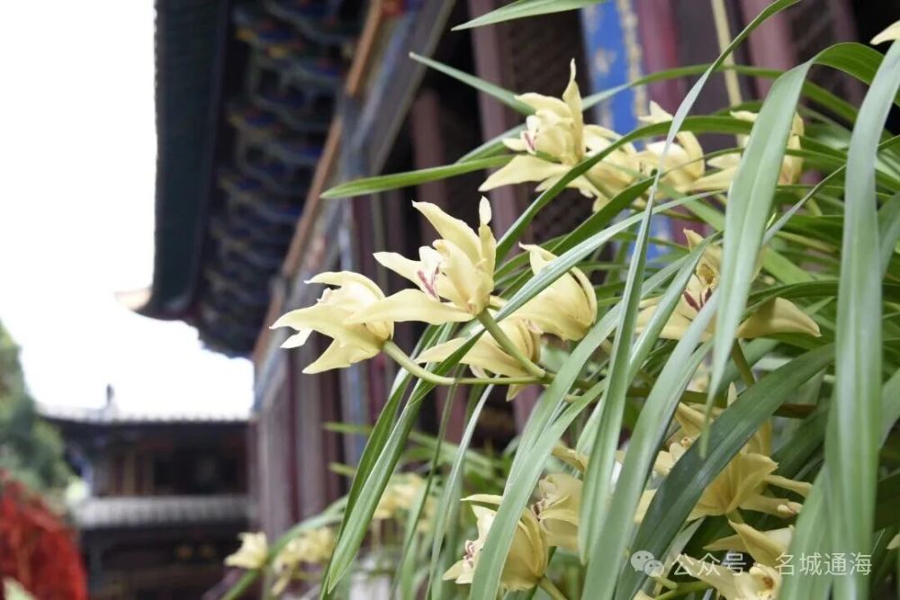步入文廟,沿中軸線拾級而上,文明坊、大成殿等核心建筑及重要區(qū)域,虎頭蘭錯落有致、蔚然成景。碩大的花朵舒展吐芳,黃綠花瓣間點綴著紫紅斑紋,花姿雍容、幽香沁遠,與莊重古樸的殿宇、精美的鏤空彩繪、蒼勁的古柏虬枝相融共生,勾勒出“古建藏幽芳 蘭韻潤儒風”的詩意畫卷。