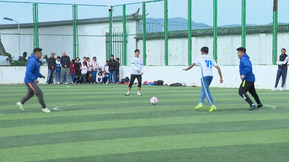 麗江特殊教育學(xué)校球隊與古城足球?qū)W校教練、球員進(jìn)行友誼賽。(麗江融媒記者 高浚 攝)
