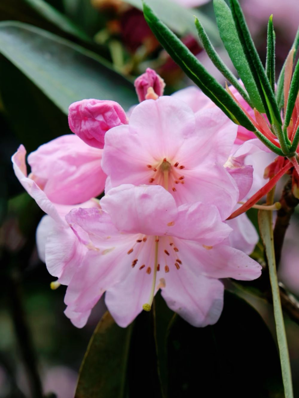 粉白的高山杜鵑安靜地立在枝頭。(麗江融媒記者 趙永蓮 攝)