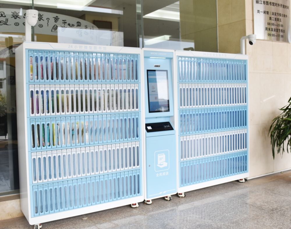 位于麗江市圖書館入口處24小時微型圖書館。(麗江融媒記者 楊四娟 攝)